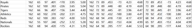 What teams are going to be offering major-league quality first base talent on shorter term deals? The bad ones who don’t need okay-to-good-performing, veteran players. Fangraphs projects these teams to finish with 95 losses or more: